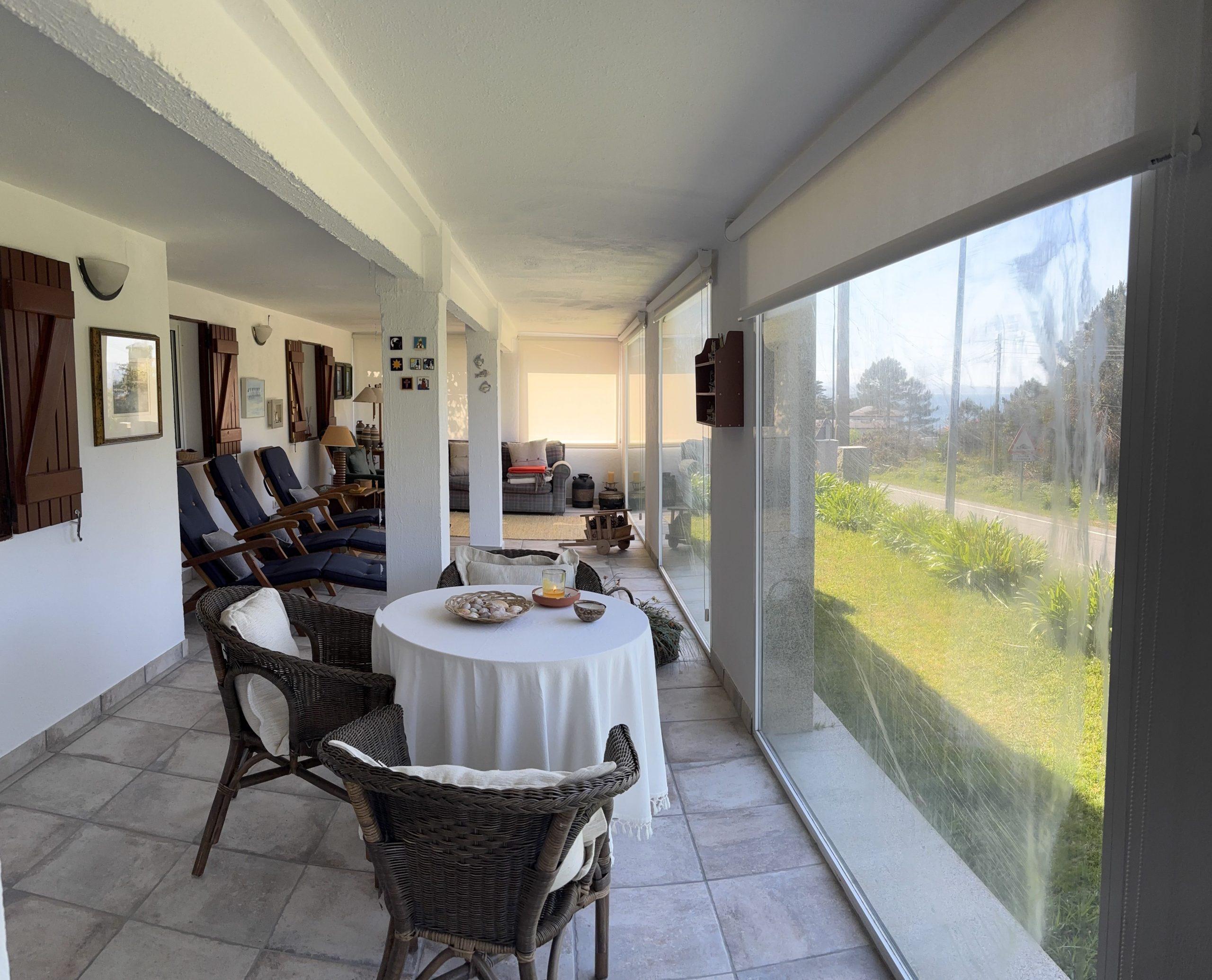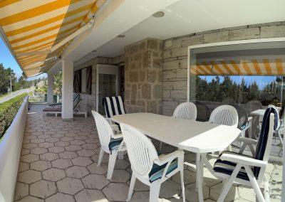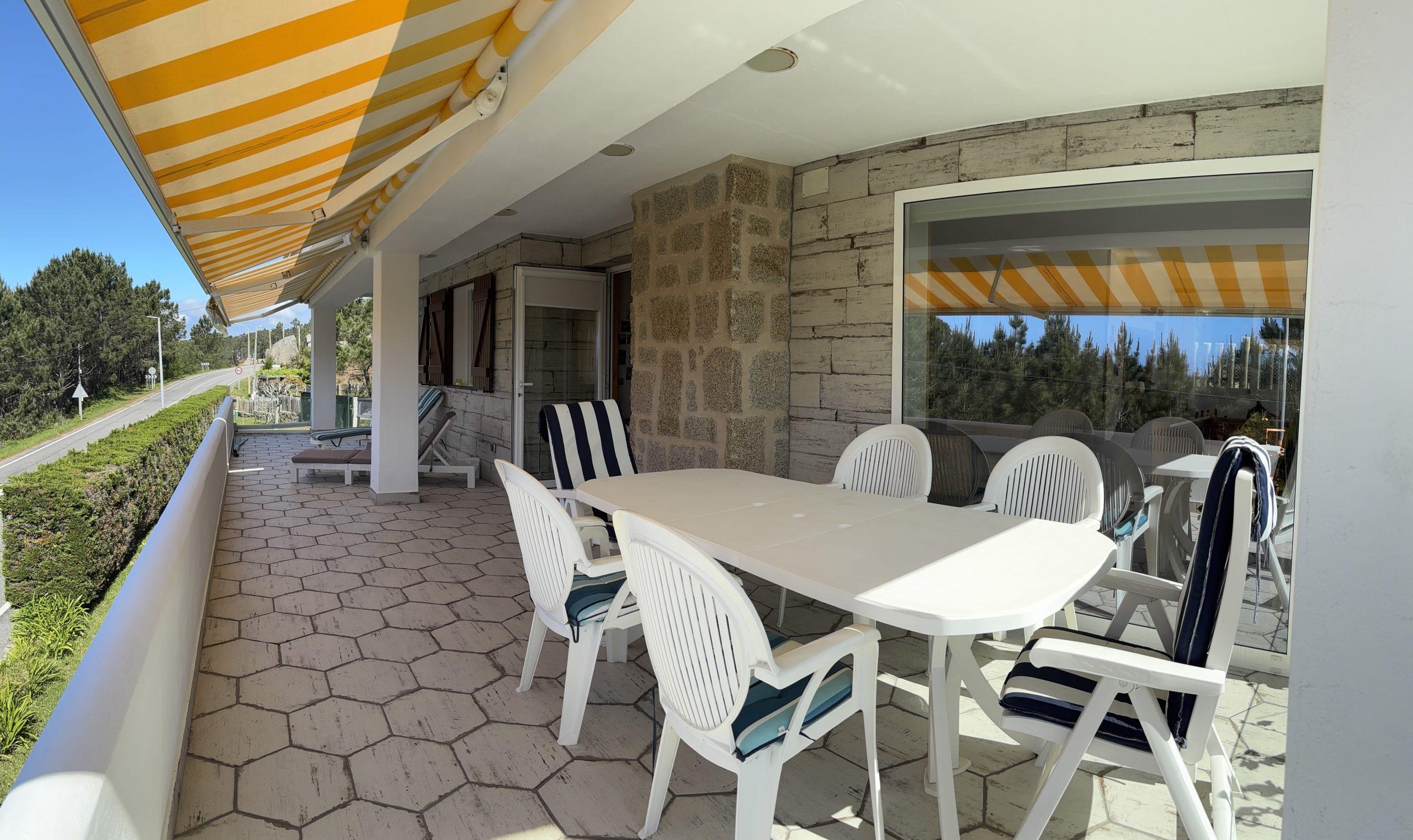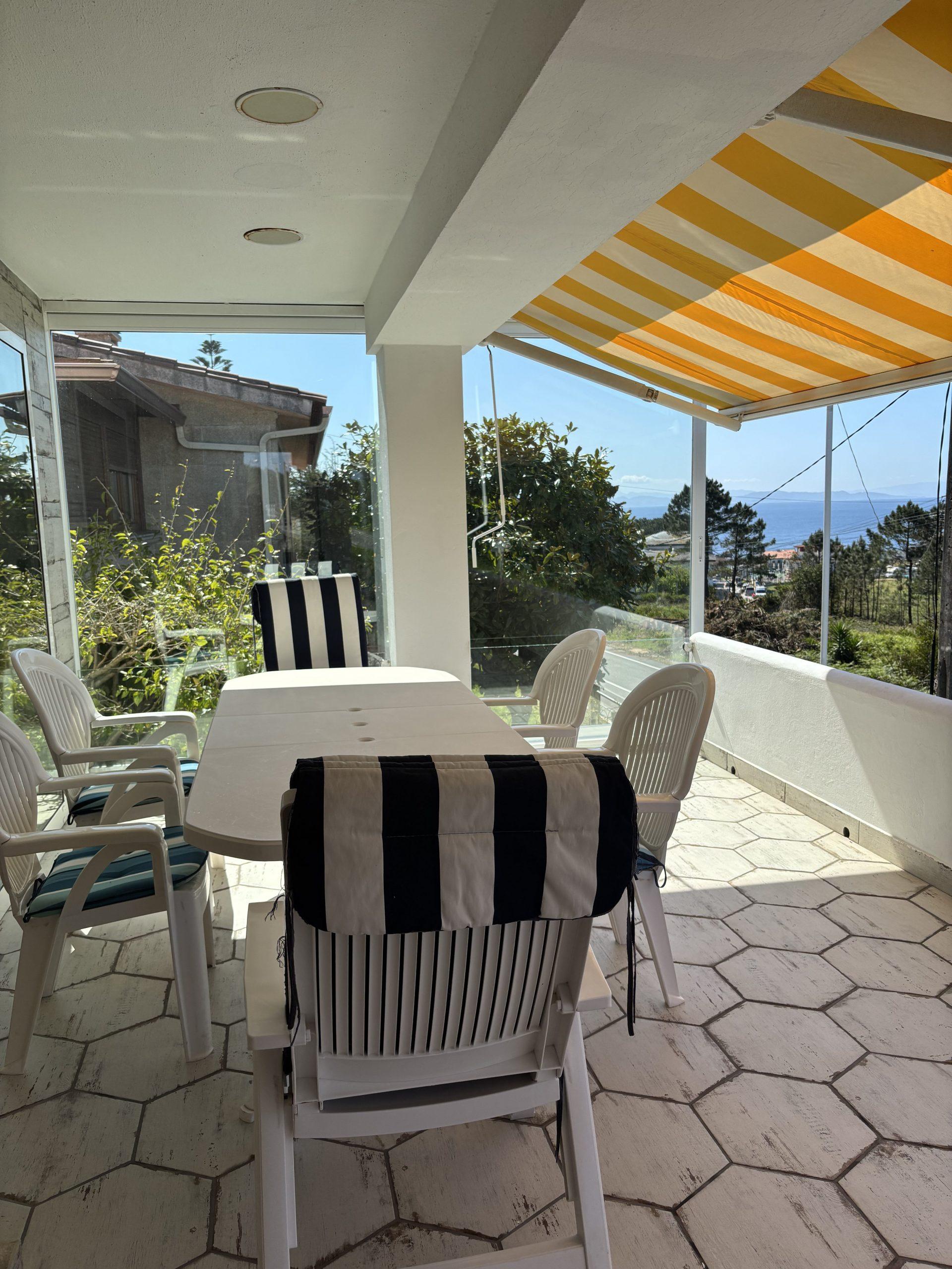 Precioso chalet de 4 dormitorios (dos dobles con cama de matrimonio, uno con dos camas y otro con cama nido), 2 baños con ducha, 2 cocinas totalmente equipadas, salón-comedor con TV. Cuenta además con un terraza en planta alta con paredes panelables para resguardarse del viento o lluvia, con hermosas vistas al mar y otra en planta baja cubierta y acristalada con vistas al jardín. Zona de jardín rodeando la casa y de aparcamiento en uno de los laterales, con entrada independiente para vehículos en la parte trasera. Ubicado en una zona muy tranquila, a 350 m de la playa de Canelas y muy próximo al Náutico de San Vicente.