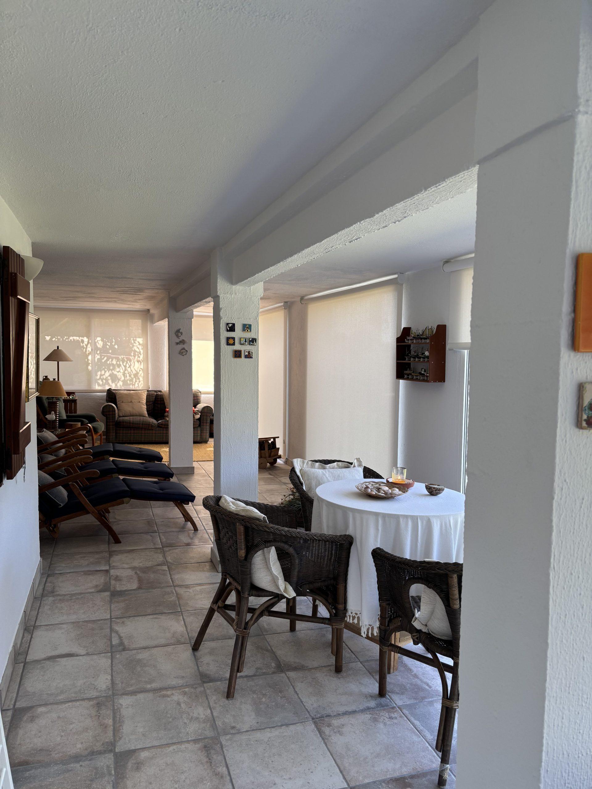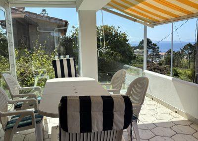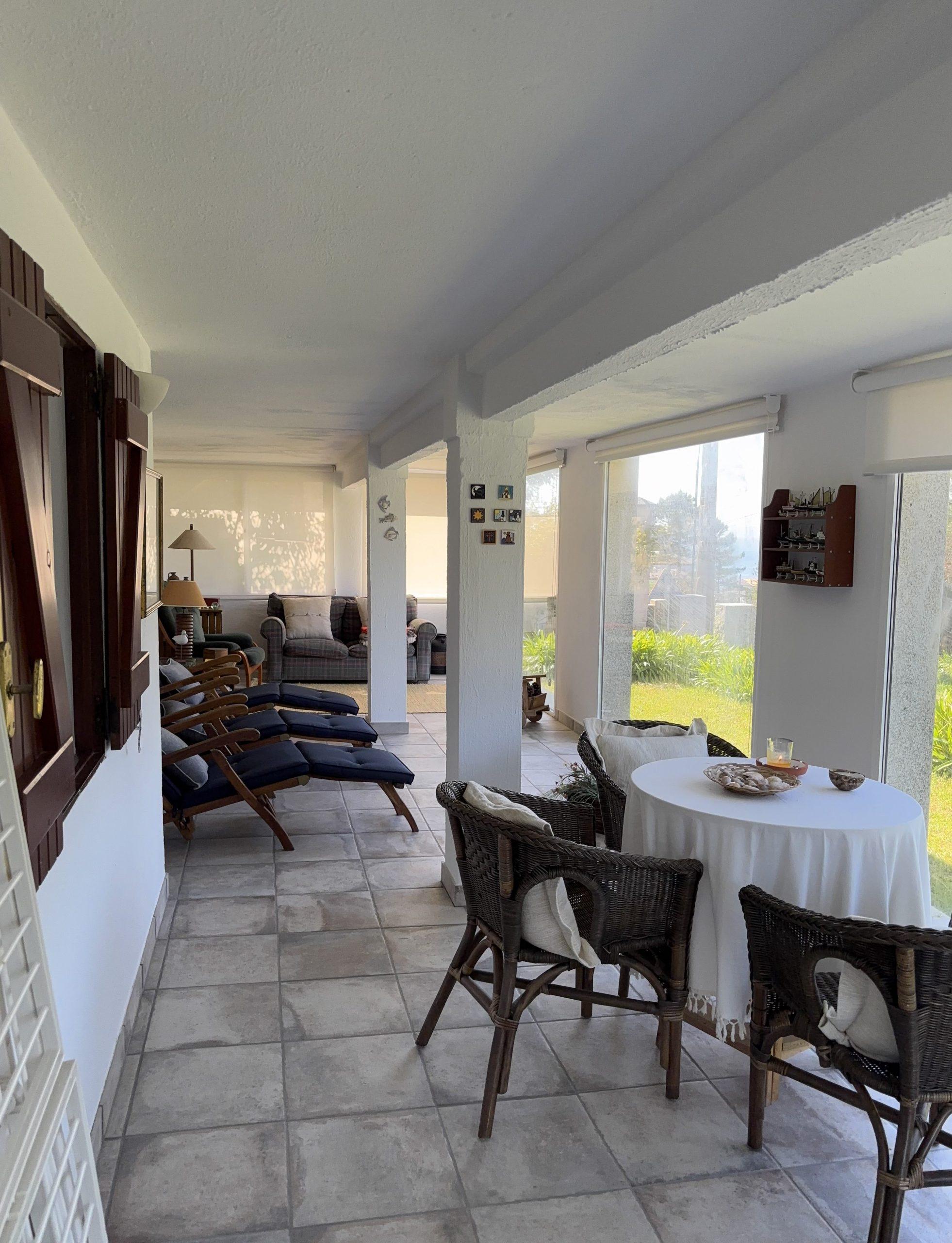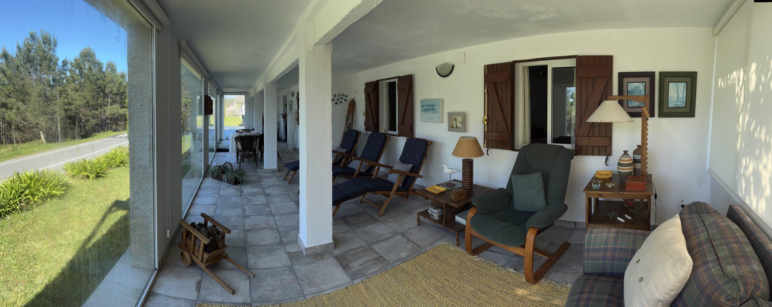 Precioso chalet de 4 dormitorios (dos dobles con cama de matrimonio, uno con dos camas y otro con cama nido), 2 baños con ducha, 2 cocinas totalmente equipadas, salón-comedor con TV. Cuenta además con un terraza en planta alta con paredes panelables para resguardarse del viento o lluvia, con hermosas vistas al mar y otra en planta baja cubierta y acristalada con vistas al jardín. Zona de jardín rodeando la casa y de aparcamiento en uno de los laterales, con entrada independiente para vehículos en la parte trasera. Ubicado en una zona muy tranquila, a 350 m de la playa de Canelas y muy próximo al Náutico de San Vicente.